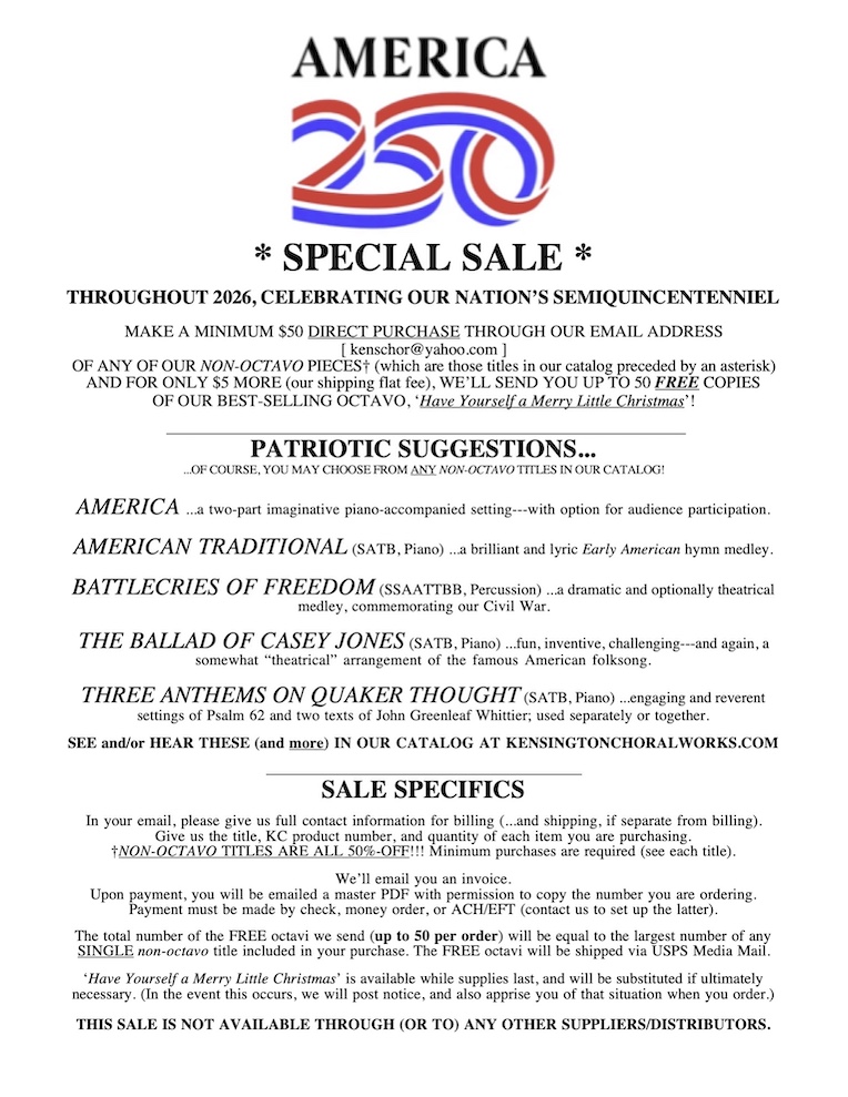 Copyright © 2001-2026 KensingtonChoralworks.com.